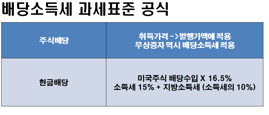 (미국의 배당소득세는 16.5%로 한국의 15.4%보다 높습니다)
